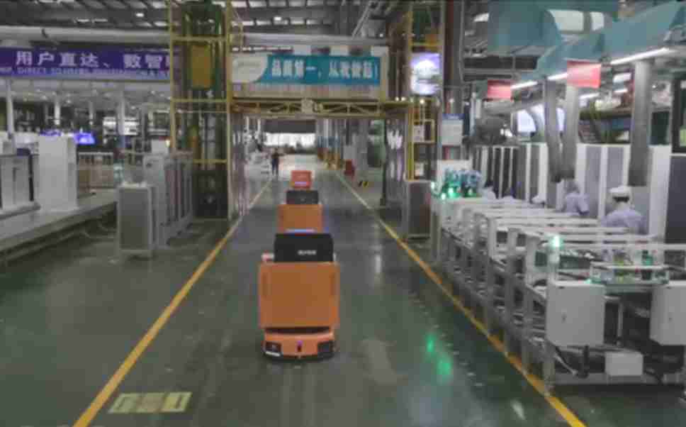 为车载冰箱物流配送打造的智能解决方案,,,,包含产中物流通过潜伏举升AMR搬运至线边,,,,产后成品物流智能仓储,,,流程包含产中物流智能齐套入库,,线边安灯叫料AMR智能配送至线边,,成品入库、、、出库,,,通过无人堆高车机器人,,,,智能仓储管理替代人工作业管理,,实现更高存储、、更高效率、、、、更具柔性化的解决方案。。。